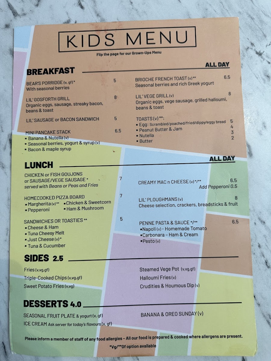 - Lunch Options: Savor the Chicken or Fish Goujons for £7.00, dig into creamy Mac N Cheese at £6.50, or enjoy the charming Lil' Ploughmans for £8.00.